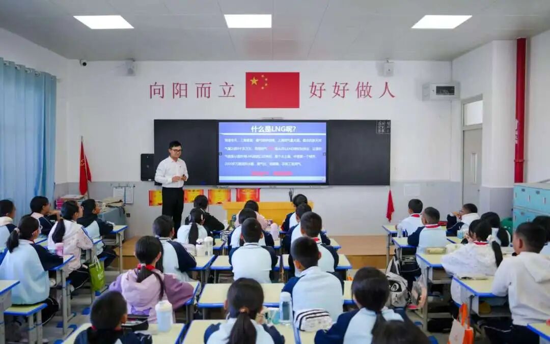 同时,志愿者为94名小学生带去3堂科普课程,回顾人民海军发展历程,厚植孩子们的爱国情怀;精讲民用船舶种类,点亮孩子们的探索精神;揭秘LNG船关键技术,展现中国“智”造实力,增强孩子们的自豪之感。课程中,志愿者们深入浅出讲解,学生们全神贯注学习,同学们感受到中国船舶“智领深蓝”的魅力,纷纷提问:护卫舰一次能航行多远?一艘LNG船能载多少吨液化天然气?“海上带货王”到底有多大?……孩子们展现出对国防和海洋的浓厚兴趣。