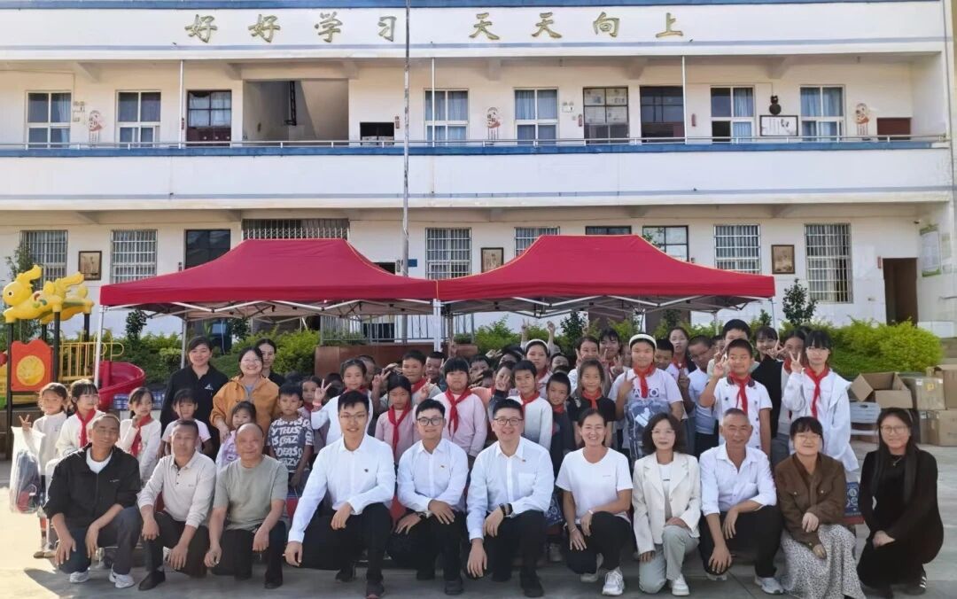 沪东中华携手七〇八所、黄埔文冲、六〇五院、广州公司、深圳海科、广船国际等单位团组织赴云南鹤庆县,向龙开口镇金河小学的孩子们捐赠上百套学习用品和文创。