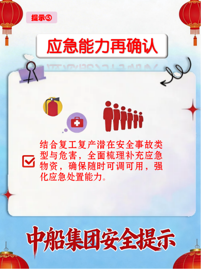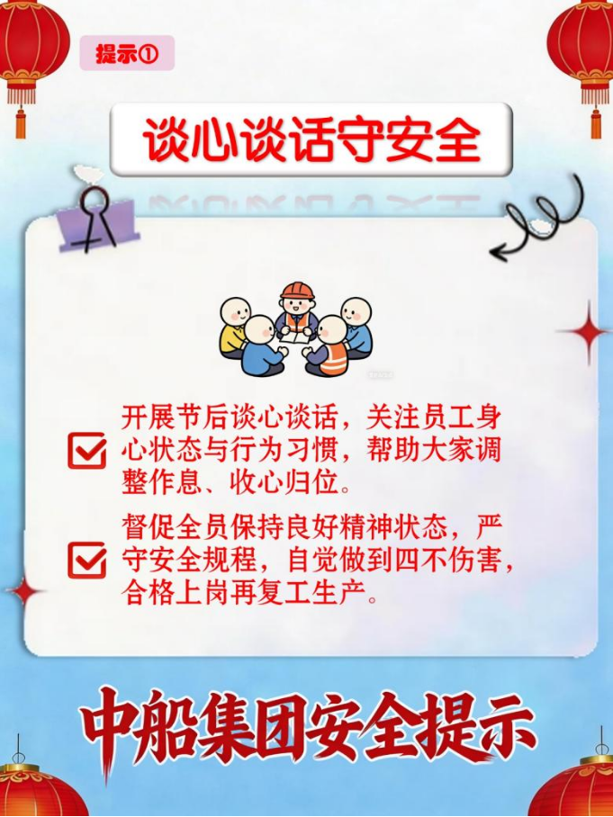 节后复工既要跑出“加速度”,更要守好安全“生命线”.复工复产要警惕哪些安全隐患?如何防范事故发生?如何确保复工复产安全有序、平稳推进?这份安全提示请收好。