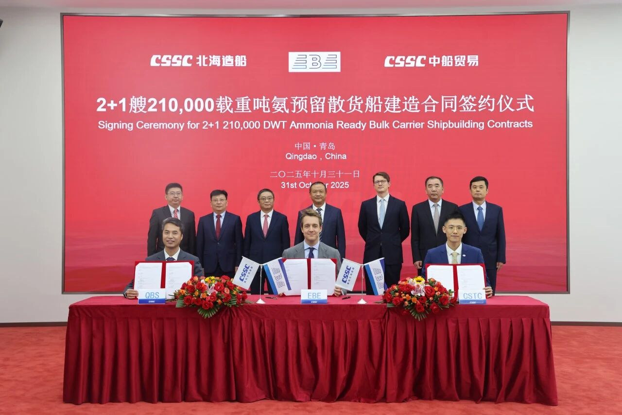 日前,中国船舶集团有限公司旗下北海造船联合中船贸易,与比利时航运公司EBE成功签署2+1艘21万吨氨预留散货船建造合同。此次合作是EBE公司首次在中国下单造船,体现了国际市场对北海造船建造实力的高度认可。