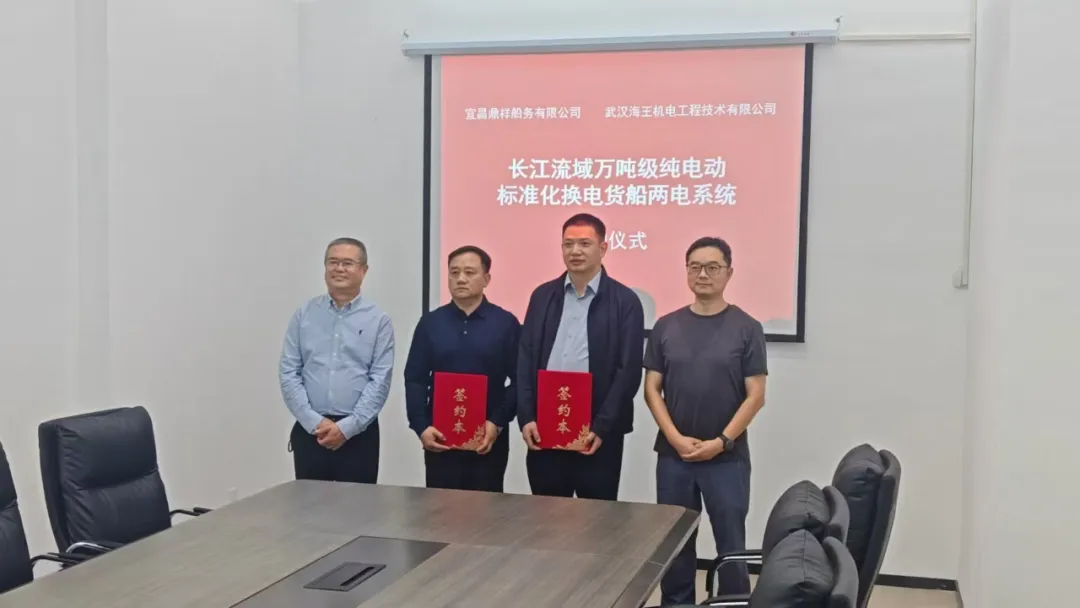 近日,中船集团七一九所旗下武汉海王机电工程技术有限公司与宜昌鼎祥船务有限公司达成关键合作,成功签订4船(套)长江流域万吨级电动标准化换电货船两电系统和智能系统供应合同,标志着双方在绿色智能船舶装备领域的合作正式落地。
