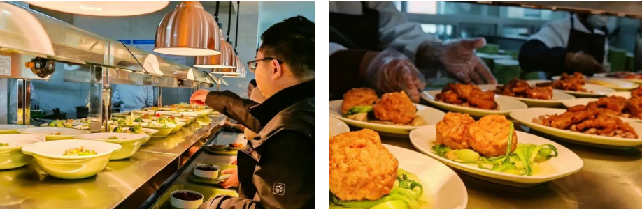 近日,七〇一所一六室新食堂正式开业,大大提升了员工的幸福感。在此以前,一六室伙食都是餐饮公司做好送来的,只有中午一份,晚餐需提前预订。而现在,早餐、午餐和晚餐顿顿都是热气腾腾新鲜出炉,优质食材制作,健康又卫生。